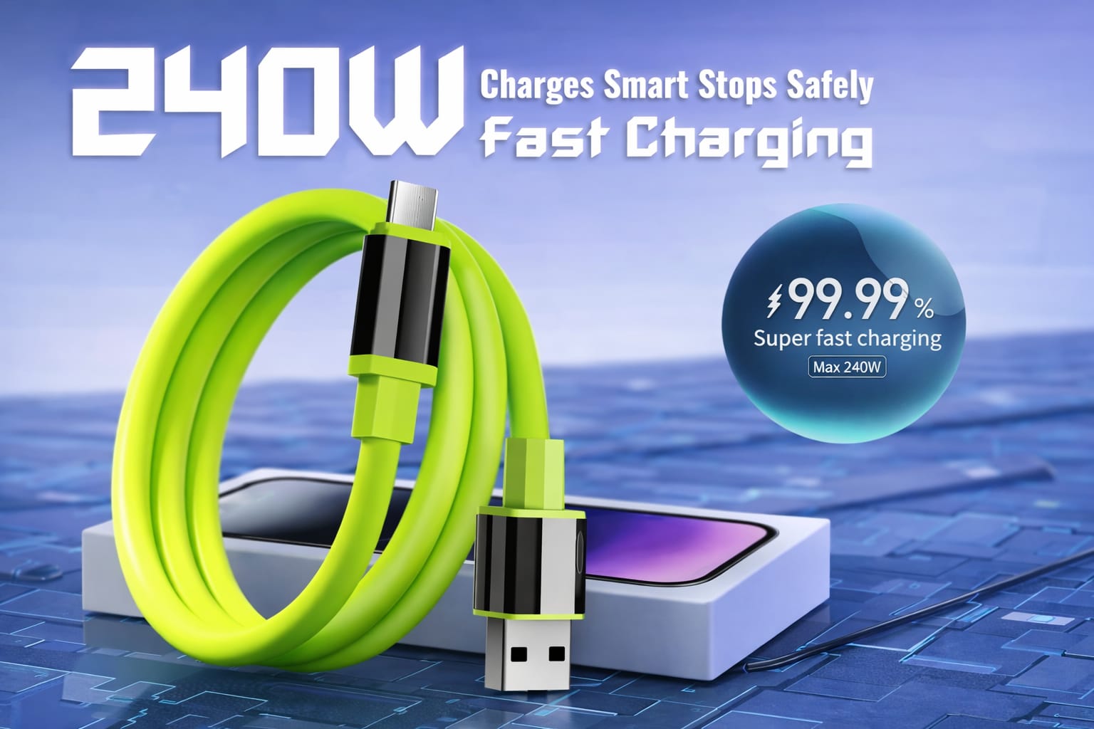 This USB-A to Type-C charging cable is designed for fast and reliable everyday charging. Built with a soft silicone exterior, it offers improved flexibility, durability, and resistance to bending and wear.
